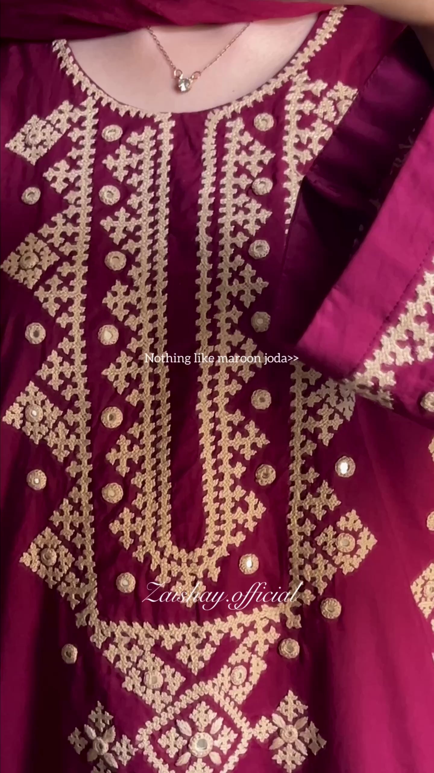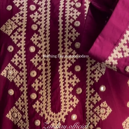 A timeless Maroon kurta, shalwar adorned with Sindhi embroidery and mirror work. A classical dress that reflects culture, elegance, and heritage.
